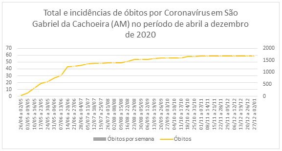 Gráfico 1: Gráfico elaborado pela autora tomando como base os boletins epidemiológicos de São Gabriel da Cachoeira disponibilizados no Instagram da SEMSA, 2020
